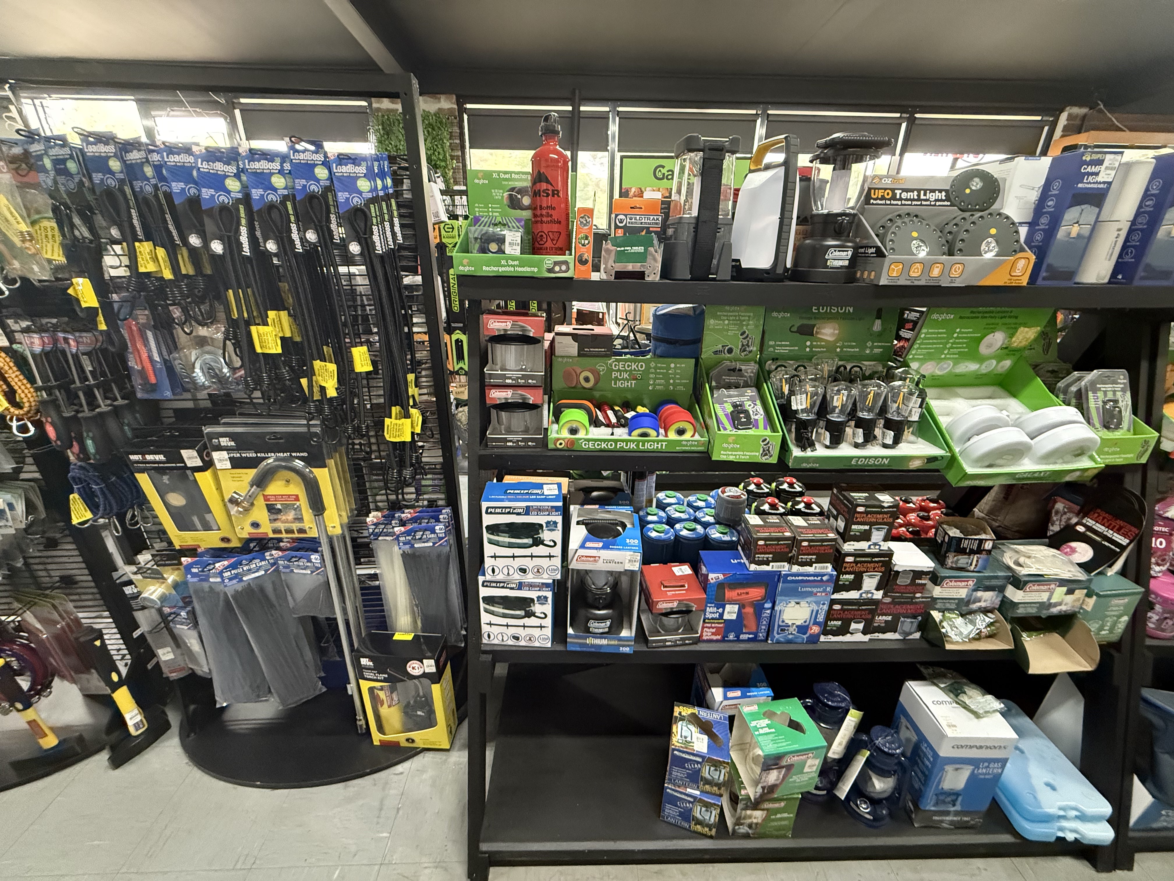 We sell a wide range of Outdoor Recreational Products. We also sell our Canvas products made in store. We also offer Gas Refills, and sell live bait.